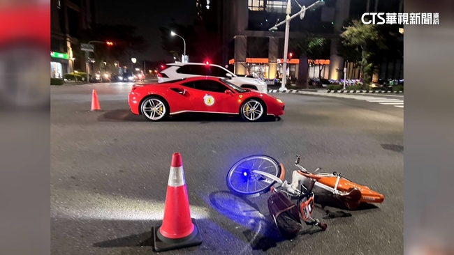 台南市北區昨(24)日晚間發生一起車禍,一名11歲男童騎著Ubike行經海安路路口,左轉時不慎與一輛超跑碰撞,男童受到輕微擦挫傷,只是,與他碰撞的是市價近1900萬的法拉利超跑,雖然只有車頭下方烤漆小損傷,不過車商初估,維修費要10到12萬,而