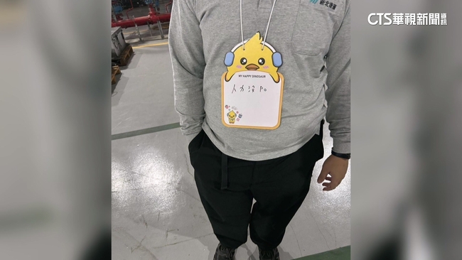 員工穿上制服,上頭寫著「新北捷運」,胸前還掛著顯眼的動物立牌,不只一人,另一名員工也一樣,但這不是辨別名牌,仔細看它寫上「人力沒PO」,他們都是被懲處,要求掛上犯錯原因說明牌。