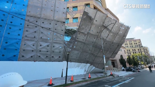 民眾說:「幸好今天是假日人車少,又剛好有一支電桿在那裡,就沒有全部垮下來了。」現場施工人員VS.記者說:「風太大了,(風太大啦,沒有人作業),電線桿擋住。」施工單位的人都在現場,歪斜當下沒有物品砸落,也沒人車被波及,但還是以安全第一為優先,先請人員防護,同時將鷹架拆除。