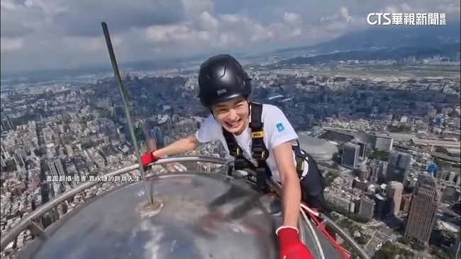 台北101董事長賈永婕說:「哈囉,台北101,我愛台灣。」台北101董事長賈永婕大聲喊愛,也不斷緊閉雙眼尖叫,她全副武裝攀上101大樓頂端,為播放平台直播活動宣傳,台北101董事長賈永婕說:「最瘋狂的董座。」賈永婕還伸出手指,摸了摸大樓最頂端,往下看,能360度俯瞰台北市,勇敢登高卻被部分網友酸作秀。