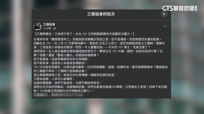 極限攀岩好手艾力克斯完成徒手、無繩索攀登台北101後,引發國際關注與喝采。但工傷協會發文痛批此舉公然踐踏職業安全,質疑101業主與主管機關是否漠視高空墜落風險,把人命當成宣傳素材,如果發生墜落意外,後果誰來承擔?