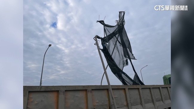 黑色護網被勾得破破爛爛,斷裂的燈桿擋住車道,一度造成交通打結,警方趕到現場處理,並通知相關單位搶修,這個路段砂石車水泥車等,數量龐大車禍發生率高,這回不慎勾到號誌桿,警方將依道交條例開罰,最高6千元罰鍰。