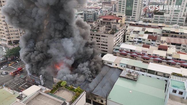 台中市北屯區家具行大火,空拍機拍下現場濃煙密布,透出紅紅火光,火光周邊,全是黑煙不斷向天空竄,煙霧太濃還造成空汙,台中市府發出空汙警報,快訊標示出空汙影響範圍,提醒民眾請關緊門窗,環保局將持續監控空氣品質。