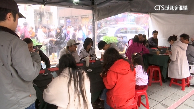 熱門的不只甜點,廣場上手寫春聯體驗區,同樣湧現人潮,民眾說:「滿有趣的,回去還可以這樣貼起來,滿應景的,(我畫的是)一隻馬拿元寶。」民眾VS.記者說:「是一個馬字,馬上有錢,(馬上有錢),(想要發大財是嗎)。」在春聯上,用毛筆親手寫下心願,體驗傳統習俗,增添滿滿趣味。