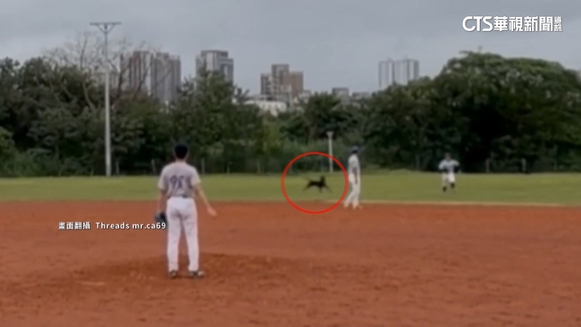 打者站上打擊區,投手蓄勢待發準備投球,下一秒外野突然一陣騷動,本來全神貫注準備接球,突然有好幾隻狗衝向外野手,選手見情況不對勁拔腿狂奔,從左外野中外野再被追到右外野,兩隊選手也瞬間板凳清空,不是因為球賽起衝突,而是拎著球棒上場趕狗。遭狗追外野手陳先生說:「第三隻(狗)往我這邊開始跑過來,就趕緊往內野去跑這樣子。」