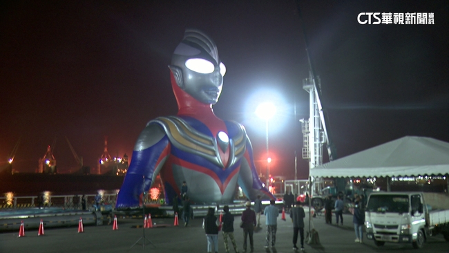 民眾說:「我專程帶小朋友來這邊看的,還滿新鮮的而且小朋友對超人也很喜歡,就很期待啊很高興啊。」初代超人力霸王,與超人力霸王迪卡,將首度以大型水上氣膜型態,現身高雄港灣,4日晚間,其中一隻,高達15公尺的氣模,在碼頭進行充氣測試,現場民眾搶先一睹他的真面目,直呼真的好帥氣。