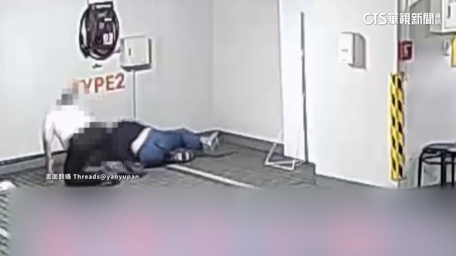 女子在停車場講電話,不時繞圈走動,一旁的保全,突然情緒失控伸手推她,女子失去重心差點摔倒,起身回頭想要理論,沒想到保全更生氣,先把她先推到牆上再往地上摔,女子奮力掙扎卻無力反擊。