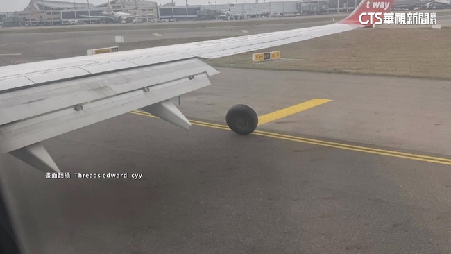 機翼旁突然出現一顆,立著的輪胎,機上乘客拍下,這驚險一幕,完全不敢相信眼前畫面,輪胎怎麼會離家出走。事發就在8日下午,德威航空一架飛機,從韓國濟州飛往桃園,降落時飛機右側主輪,發生脫落異常情況,機場公司立即暫停,北跑道起降,直到下午5點35分,恢復起降作業,不僅導致後續航班有所延誤,還造成3架航班,10分鐘內接連發出Mayday求救訊號。