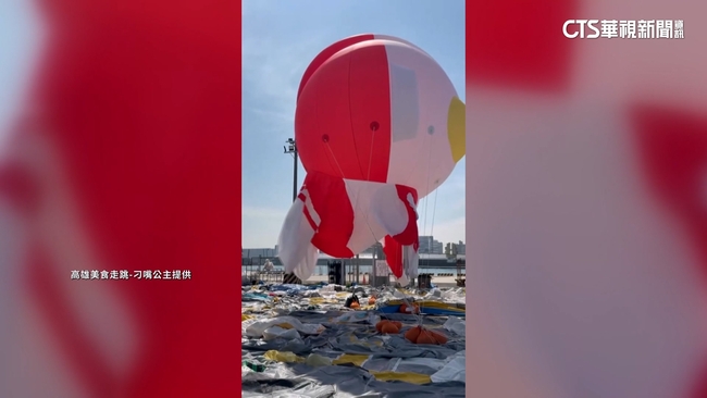 Q版初代超人力霸王,前幾天被民眾捕捉,身體消風,有人指出疑似附近遊艇勾破,但觀光局解釋是強勁風勢,因此緊急消氣,進場維護,後續將視天候狀況,進行規劃展演。