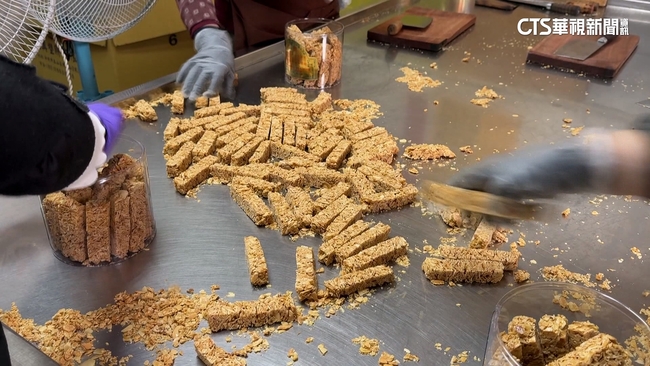年節將至,9日凌晨開始,大批民眾不畏17度左右低溫穿著厚外套,冒寒風在街頭排隊等候,甚至帶上板凳,因為這款花生糖是年節熱門伴手,高雄市花生糖業者VS.記者說:「賣完了就沒有了,我們沒有擋人就可以排,(今天是限量多少的人排隊),大概100多個。」這款鳳梨酥,外層餅皮酥香柔軟,甜度更是拿捏恰到好處,受顧客讚不絕口之外,最大亮點是三入鳳梨酥就能裝進精美禮盒內,成為不少民眾送禮選擇,因為心意送到位,份量熱量也不會太有負擔。