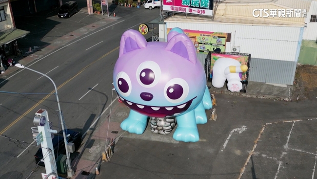 從上往下俯瞰,超過10公尺高的IP氣偶「偶呀吉」,獨特的三隻慧眼,芋頭配色的外型開上甲仙大橋,遠遠就看到,讓人很難不去注意,不只成為新地標,深入當地,隨處可見彩繪、馬賽克、半立體雕塑、剪紙與羊毛氈等形式的偶呀吉,散布各地,春節還沒到,已經有民眾特地當地朝聖。