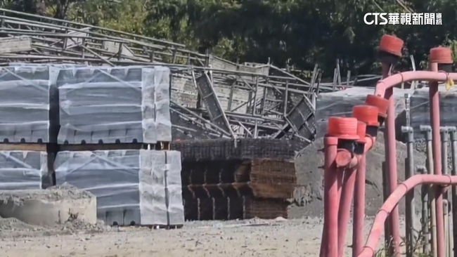 工地人員VS.記者說:「(剛剛是風大還是怎樣嗎)這我也不清楚,因為我都在辦公室這裡,不清楚,(這是在蓋什麼)這我們不能說。」事發現場還可見變形倒塌的鷹架,散落地面上,原來事發就在14日中午11點多,嘉義水上中庄村,這處新建水土保持計畫的工地內,至少兩層樓高的鷹架突然倒塌,也讓正在作業的五名工人逃生不及,當場被砸中,突如其來巨響也讓其餘工地人員,立即通報警消到場救援。