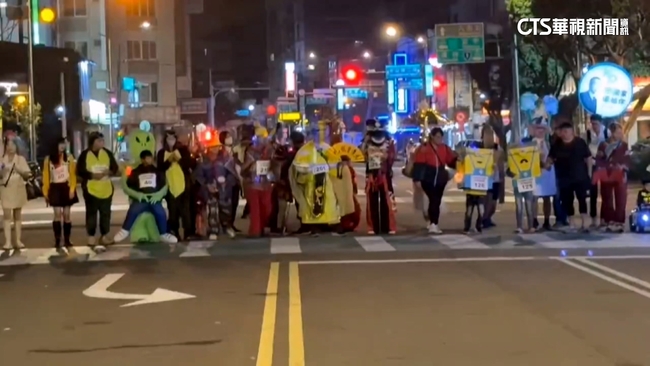 ㄟ怎麼沒人往前衝,跟一般路跑不太一樣,大人小孩都穿上特殊服裝,在大街上像在走秀,還有人不想用走的。小小警察,開著電動車,參加路跑超拉風,旁邊還有媽祖娘娘相伴,彰化市南瑤宮,睽違兩年再度舉辦「除夕路跑」活動,今年特別新增最佳造型獎,前五名頒發兩千元,吸引民眾共襄盛舉。