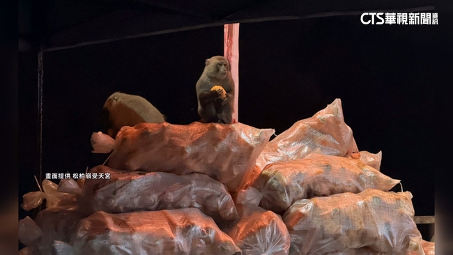 除夕夜家家戶戶吃團圓飯,南投名間鄉山區的獼猴也來湊熱鬧,松柏嶺受天宮為了讓拜拜的民眾,品嘗平安餐,廟方準備了4千斤的食材,堆積如山的紅蘿蔔與白蘿蔔,就放在廣場旁邊的帳篷區,沒想到引來10多隻獼猴翻越護欄,把這些蘿蔔當成免費的自助餐,宛如「猴子版的圍爐」,廟方認為,這些獼猴也是大自然的部分,如果食材被啃食受損,會另外挑出來,不會拿去煮,就當做給牠們的圍爐加菜。