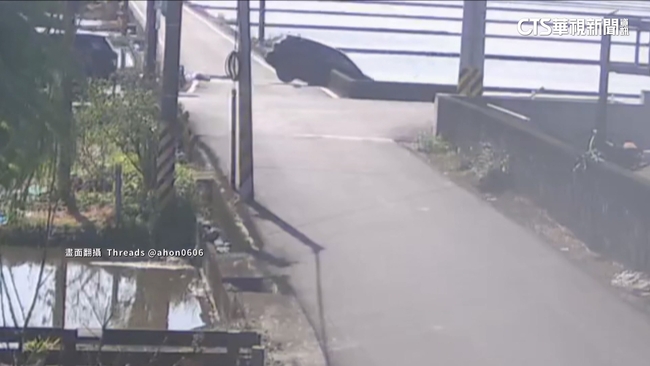 記者VS.附近居民說:「上次有一台掉到那邊啊(是喔),前幾天,有一台機車掉到這邊來,宜蘭日常,怎麼講,應該算是我們員山金泰路的日常吧,因為我那天開車回家,一開進來(聽到)砰一聲就出去,我想說又怎麼了。」