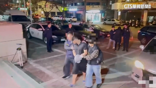 2名男子雙手上銬,頭低到不能再低,他們是大同區小黃搶案的嫌犯,犯案後一路往南逃逸,但早已被警方,掌握行蹤,多名員警蹲低埋伏,看準時機一舉衝進網咖逮人,因為他們在凌晨,不只假扮小黃乘客,脅迫司機奪車,更掏出利器傷人。