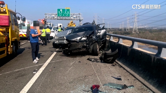 國道警方說:「初步調查,47歲大貨車駕駛林姓男子,行駛在外側車道,疑似分心駕駛,沒有注意前方路況,直接追撞前方的轎車、休旅車,和1輛小貨車。」警方提醒民眾,開工日趕上班,還是要注意車前狀況,確保平安。