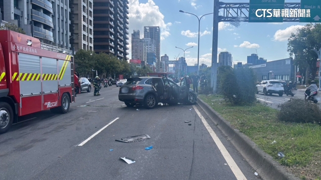 台北市北投區承德路上今(16)日上午發生一起追撞車禍,造成3人受傷所幸均無大礙,原來是一名謝姓男子駕駛小客車要超車,但疑似沒抓準距離,後方休旅車追撞後失控,整輛車衝上中央分隔島,車體嚴重毀損變形,駕駛全身撕裂傷、雙腿骨折,副駕及謝姓男子則是輕傷,由於當時撞擊力道巨大,車殼零件噴飛到對向車道,波及一名女騎士。