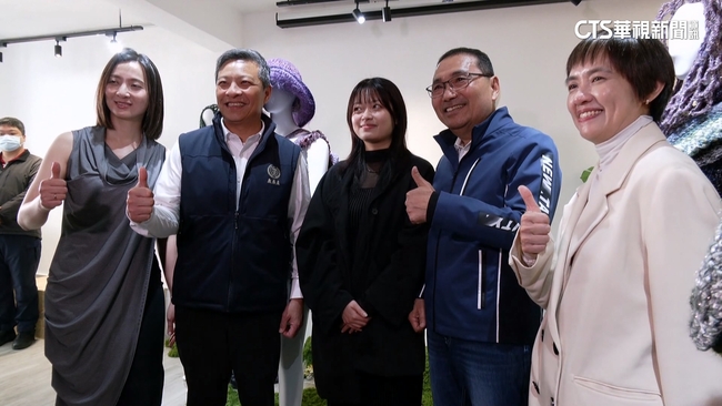 新北市長侯友宜說:「這帽子也是用鉤針自己做的手作的,這只有一件(對)。」看著學生利用廢棄材料,製作而成的時尚精品,新北市長侯友宜發出讚嘆。