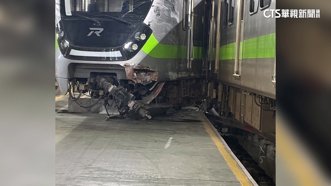 從畫面可以看到列車車廂出軌卡在月台上列車下方也部分撞毀兩列列車卡在一起動彈不得!事發在晚上9點29分在基隆七堵站調車時發生兩列EMU900型電聯車相撞出軌意外一共有6節車廂出軌,造成一位員工受傷,現場人員立即通報119,台鐵表示目前正在處理中,所幸沒有影響正線的行車。