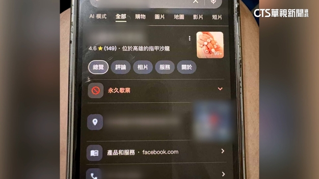 美甲店老闆娘說:「有客人就來詢問說,你們是今年過完年就不做了嗎,我們才去搜尋,才發現怎麼被改,永久歇業了,(要改回來)我們要舉證,我們正在營業,還要秀圖等等。」老闆娘實在好無奈,營業時間被竄改永久歇業,至少有3-4次,每次提交資料改回來後,又再被惡搞,近期還被改成肉包店,影響到生意,也影響店家名譽。