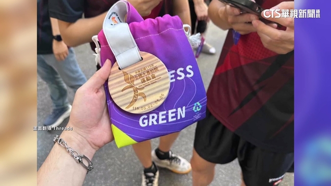 全國大專院校運動會,目前各項賽事正在進行,有桌球比賽選手勝出獲頒獎牌時,發現獎牌是塊木頭做的牌子,牌子上還有錯字,讓他們很傻眼,認為選手們的心血,沒有受到尊重,當下跟主辦單位中央大學反映,校方表示會收回更正錯字,至於為何不同以往,改用「木頭獎牌」,校方表示結合今年全大運永續環保的主題,才會用木頭獎牌!