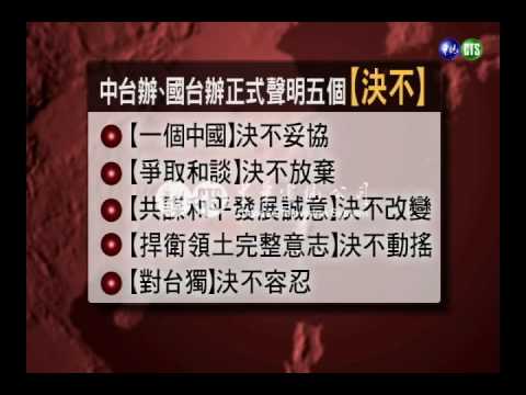 聲明中還聲明五個決不,一中立場〔決不妥協〕,捍衛國家主權〔決不動搖〕,對台獨〔決不容忍〕,而對台政策,包括了回應陳總統的建立兩岸軍事互信機制、全面三通等等,但要實現這七項主張,大陸有前提,就是要台灣當權者承認大陸和台灣同屬一個中國。
