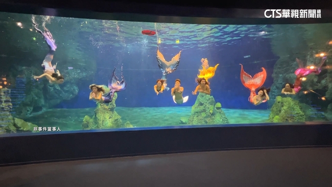 美人魚演員明明說:「腳都不能分開,所以會有一些游動的困難,比如說你不能很輕鬆的,輕易的轉方向什麼的。」套上人魚裝雙腿就被綁住,比起一般潛水更有難度,要在水中遨遊表演,這些人魚通通都得要考取合格證照才能下水,位在花蓮遊樂園內的人魚們,跟民眾互動讓大小朋友都好興奮,但防止意外SOP至關重要。