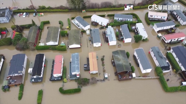 英國週日剛遭遇大雪侵襲,週一又下起了豪大雨,氣象單位對150個地區發布淹水警報。