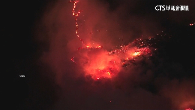 洛杉磯郊區的山丘,至少六塊區域燒起熊熊烈火,最嚴重的地區莫過於名為「太平洋斷崖」的高級社區,當地住了不少影視明星,由於天乾物燥加上動輒每小時160公里的強陣風,火勢完全不受控,就連遠在太空軌道的衛星,都可以清楚拍攝到野火散發的大量煙塵。