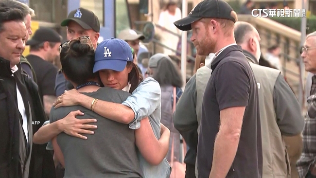 洛杉磯野火持續延燒,住在洛杉磯一帶的英國哈利王子與梅根夫婦,被拍到以一身低調又輕便的裝扮,到當地的疏散中心慰問災民。