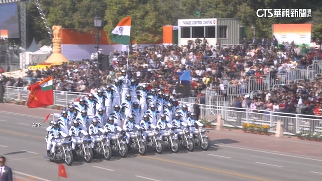 機車疊羅漢,九台摩托車載了近30人,不管載多少人,什麼花招都難不倒,空中還有精彩的戰鬥機編隊表演,印度昨(26)日在新德里舉行的國慶大典,讓人驚嘆,民眾說:「今天得以看到慶典,我們等了一個月,才有機會目睹這一切,我們很喜歡。」