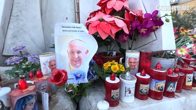擺放蠟燭為教宗祈福,希望他能度過難關。梵蒂岡也發表簡短聲明,表示教宗在醫院度過了「平靜的一夜」,但並沒有提及是否已經度過危急時期,不過,一名不願具名的梵蒂岡人士表示,教宗神智清醒,裝有鼻管供氧。