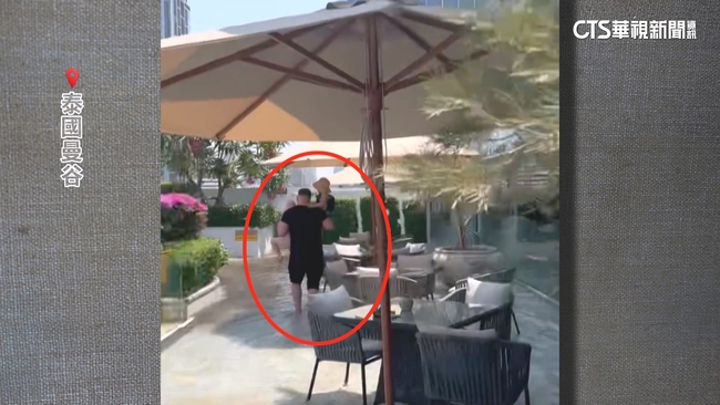 馬來西亞籍男子說:「地震地震,我們那個水,那個腳全部都濕了。」泳池裡的水劇烈搖晃溢出來,旁邊休息區瞬間變成一條小河,背景尖叫聲四起,場面一片混亂。