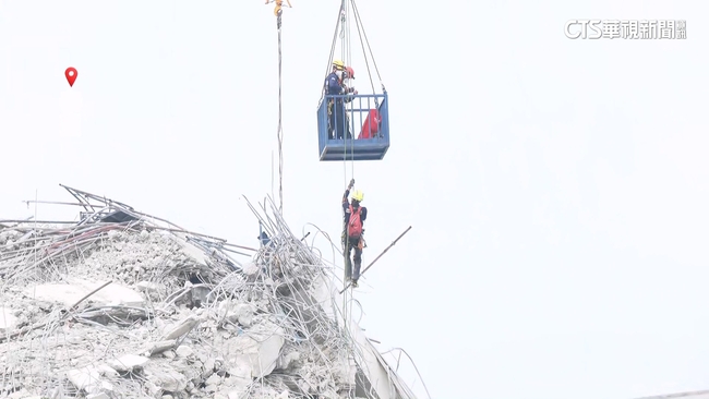 記者甘媄心說:「強震發生後的第三天,現在搜救行動還在持續進行當中,現在也可以發現說剛剛稍早,這邊現場是已經出動吊車,來進行救援行動。」