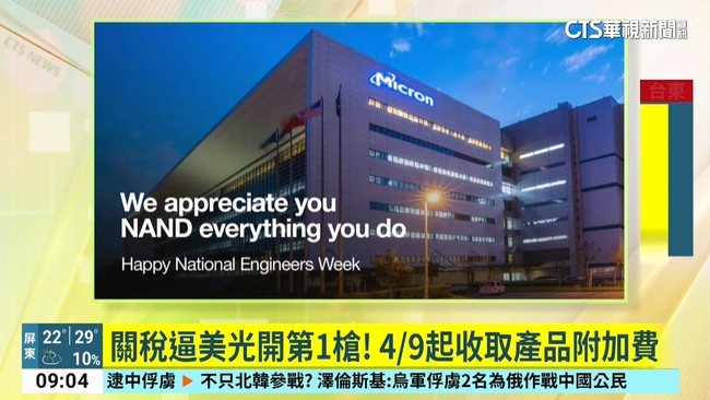有消息指出,美國記憶體晶片製造商美光科技已告知美國客戶,公司計劃從週三開始對部分產品收取附加費,以應對川普的新關稅。