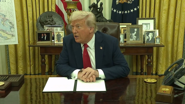 當主持人說道「對中國課徵145%的關稅如同貿易禁運」,川普直言,「那很好啊,他們活該。」並表示「你不知道中國會不會吸收這些成本,但145%關稅基本上,他們無法跟美國做太多生意,他們每年我們身上賺取一兆美元,他們剝削我們的程度前所未見,且幾乎全世界的國家都在剝削我們,現在不會再這樣了。」