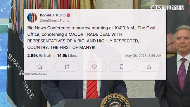 川普表示,「今天對美國和英國來說,應該是個非常重要且令人振奮的日子」,他還指出「這項跟英國達成的協議,是完整且全面的,將在未來許多年,鞏固美國與英國之間的關係」,川普最後說「現階段還有許多其他協議,正處於密切磋商階段,將會陸續公布。」