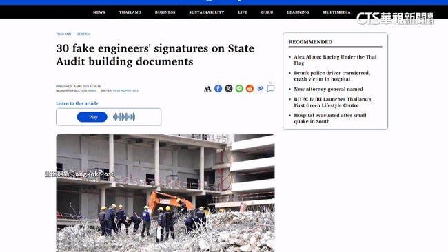 泰國 大樓 倒塌 簽名 偽造 工程師 審計署