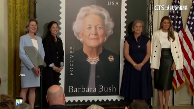美國第一夫人梅蘭妮亞與美國前總統布希的家族成員,在美國時間8日,共同揭幕一款,紀念美國已故的第一夫人芭芭拉.布希的郵票,紀念她的百歲冥誕。