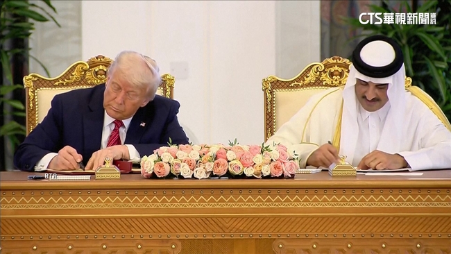 卡達王室也以盛大晚宴歡迎川普,國王塔米姆伉儷,更親自在王宮門口迎接,和隨行的美國官員一一致意,其中也包括特斯拉執行長馬斯克。作為東道主,卡達可說給足川普面子,同時也給足裡子。司儀說:「我們要見證卡達與美國,簽訂航空領域的協議。」