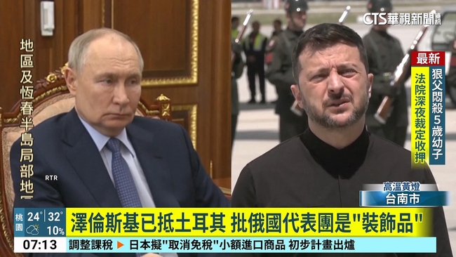 烏克蘭總統澤倫斯基15日批評,俄國派出的代表就像裝飾品,能不能做決定也不清楚,但他後來又改口,說為了尊重川普和土耳其,會派代表團出席由烏國防長領軍,同時間俄國官方電視台,播出俄國代表團在伊斯坦堡苦等的畫面。