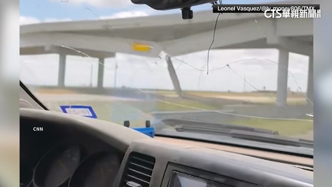 美國德州圖利亞一座橋梁,突然大面積崩落,而且還剛好有一位駕駛開車路過,差點被崩落的橋樑殘骸砸中。