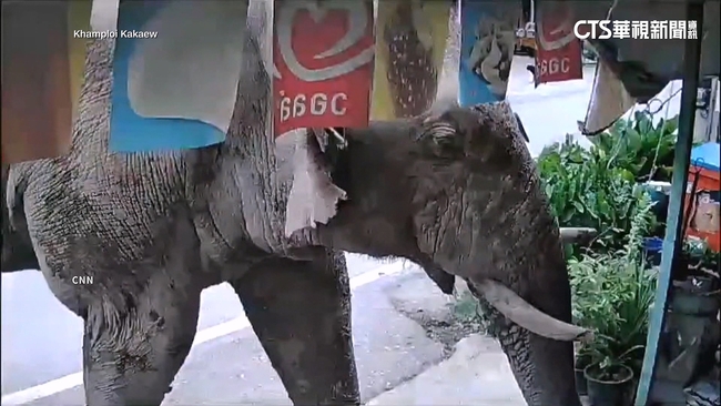 CNN記者說:「在吃完最後一大口後,大象踩著不太優雅的腳步,後退離開了這家位於曼谷東北部國家公園附近的商店。」這頭大象,在10分鐘內就吃掉10包糖果、花生還有香蕉乾,CNN記者說:「國家公園的管理人員最終出現並趕走了這隻貪吃象,店主表示後來有個野生動物保護組織願意為這個大傢伙買單。」
