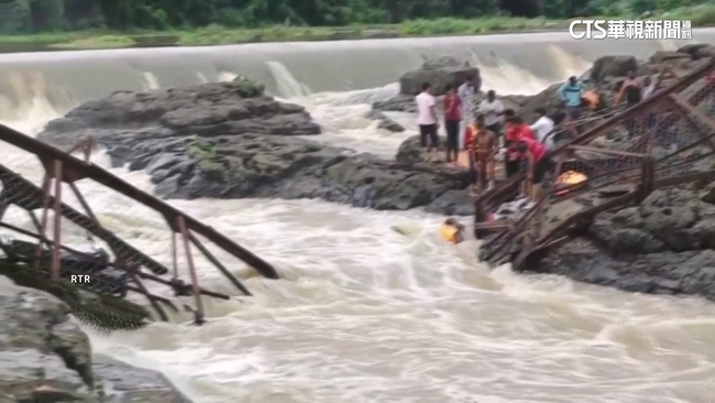 印度「馬哈拉什特拉邦」,一處熱門觀光景點橫跨河流的鐵橋,遭到湍急水流沖斷。