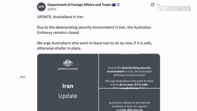 以色列與伊朗互相攻擊,中東局勢不斷惡化。澳洲外交部長20日表示已經關閉澳洲駐德黑蘭大使館,並指示官員離境。