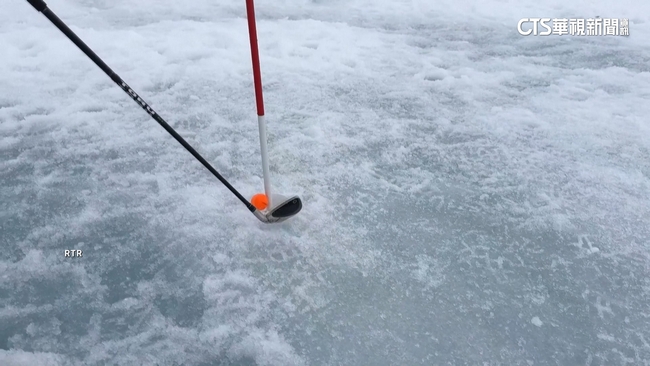 比賽工作人員:「321開始。」比賽一開始選手就揮杆,希望揮出好成績,一群熱愛高爾夫的球友相互較勁,看誰能用最少桿數進球,不過他們打球的地方很特別,不是果嶺而是在冰面上。