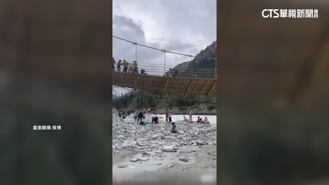 中國遊客說:「我剛才過來的時候,趕快過來,趕快過來。」繩索斷裂吊橋瞬間傾斜,橋上的遊客緊抓扶手寸步難行,還有人當場摔下橋倒在石堆上表情痛苦,現場尖叫聲吶喊聲不絕於耳。