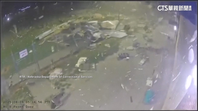 狂風暴雨肆虐,位於林肯市的「內布拉斯加州」州立監獄,連監視器都,被風吹得不停晃動。監獄牢房在強風吹拂之下被掀翻,隨後砸落在空地上,殘骸四散。另一個角度、還能看到,大片殘骸甚至砸壞監獄中的金屬圍籬。矯正機構官員表示,這起事故導致當局,必須重新安置387名在押人員。
