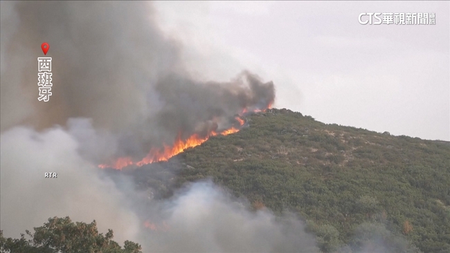 另一頭的伊比利半島也在與野火搏鬥,葡萄牙的野火從9日就開始延燒,消防員派出直升機灑水,但因為氣候實在太乾燥了,控制範圍有限,而在西班牙北部,同樣出現火焰衝天的景象。